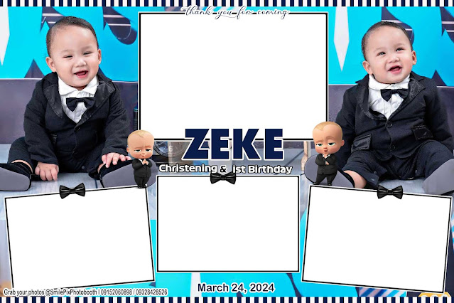 Personalization is key to making the photobooth experience unique. Incorporate the event details prominently into the design. Names and significant dates should be clearly visible, and you can utilize different fonts and text styles to make these details pop. In this example, “Zeke’s Christening & 1st Birthday” is prominently displayed, making it clear what the event is celebrating.